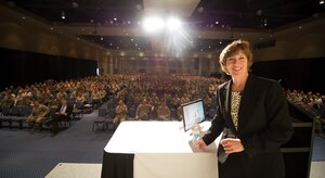 Anne Munch spoke to more than 4,000 Air Commandos on Sexual Assault Prevention and Response during a visit here March 25 through 26.Munch, prosecutor and advocate for victims of domestic violence, sexual assault and stalking, is a sought after conference speaker with 25 years of experience in her
