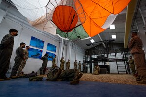 Airmen from the 801st Special Operations Aircraft Maintenance Squadron, work on a CV-22 Osprey during maintenance at Independence Hangar on Hurlburt Field, Fla., Feb15, 2022. The 801st SOAMXS's mission is to perform all equipment maintenance in support of worldwide special operations missions in