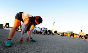 Chief Master Sgt. Matthew Caruso, Air Force Special Operations Command command chief, host the 2015 AFSOC Chiefs Orientation at Hurlburt Field, Fla., Jan. 27, 2015. AFSOC chiefs participate in an early morning physical training session for the event.