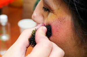 Staff Sgt. Jason Mayfield, 1st Special Operations Equipment Maintenance Squadron aircraft structural maintenance lead technician, bends sheet metal with a 90- degree grinder on Hurlburt Field, Fla., Oct. 29, 2014. The sheet metal, after it is molded and shaped correctly, will be used to make repairs