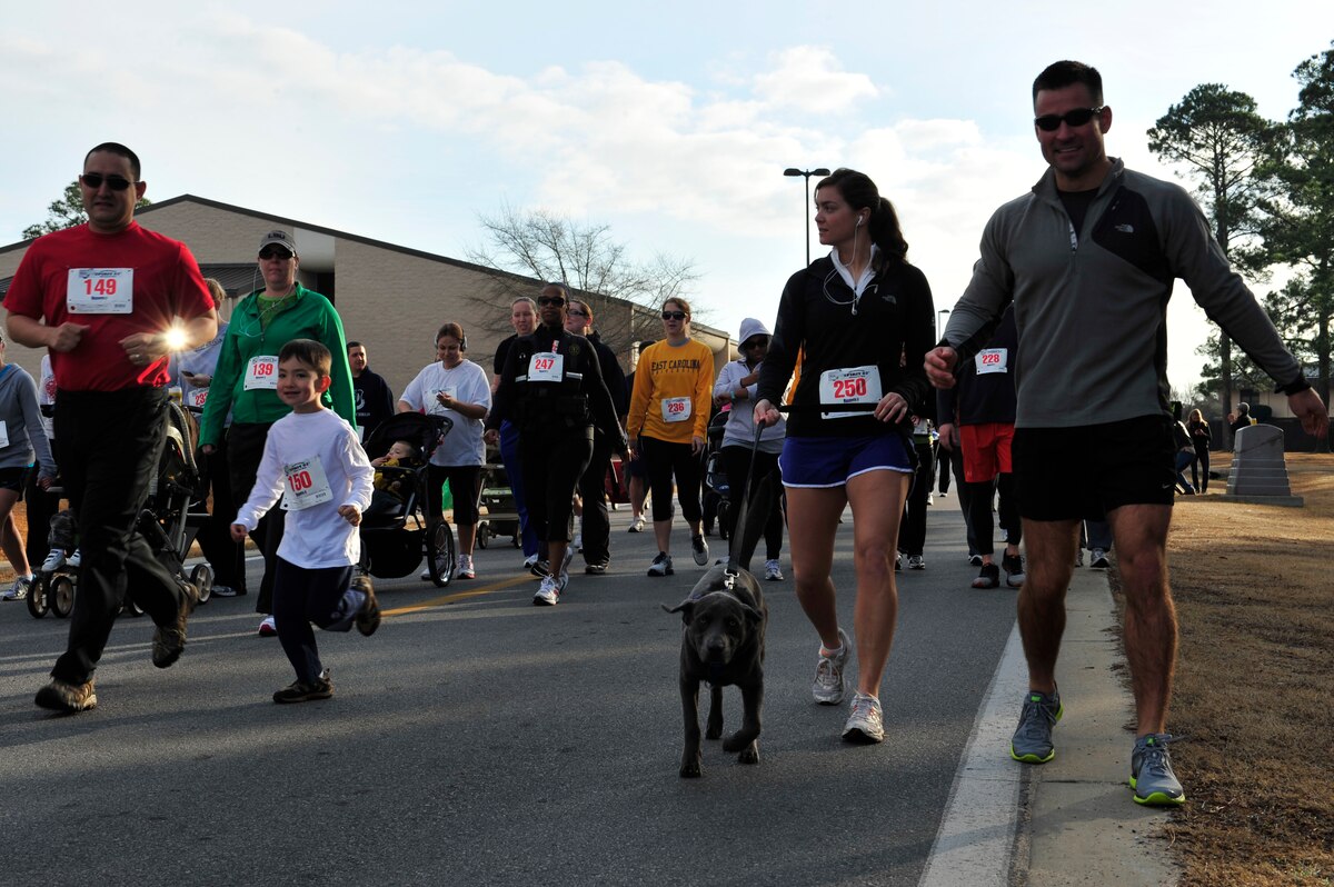 Erika Blankenship, wife of U.S. Air Force Staff Sgt. Andrew Blankenship, 4th Special Operations Squadron, bundles sons Ander and Andrik for the Spirit 03 14K and 5K, Hurlburt Field, Fla., Jan. 30, 2011. The run was the first of a series of events scheduled to pay tribute to the fallen crew of Spirit 03, an AC-130H Spectre Gunship lost during Desert Storm. (U.S. Air Force photo by Staff Sgt. Stephanie Jacobs/RELEASED)