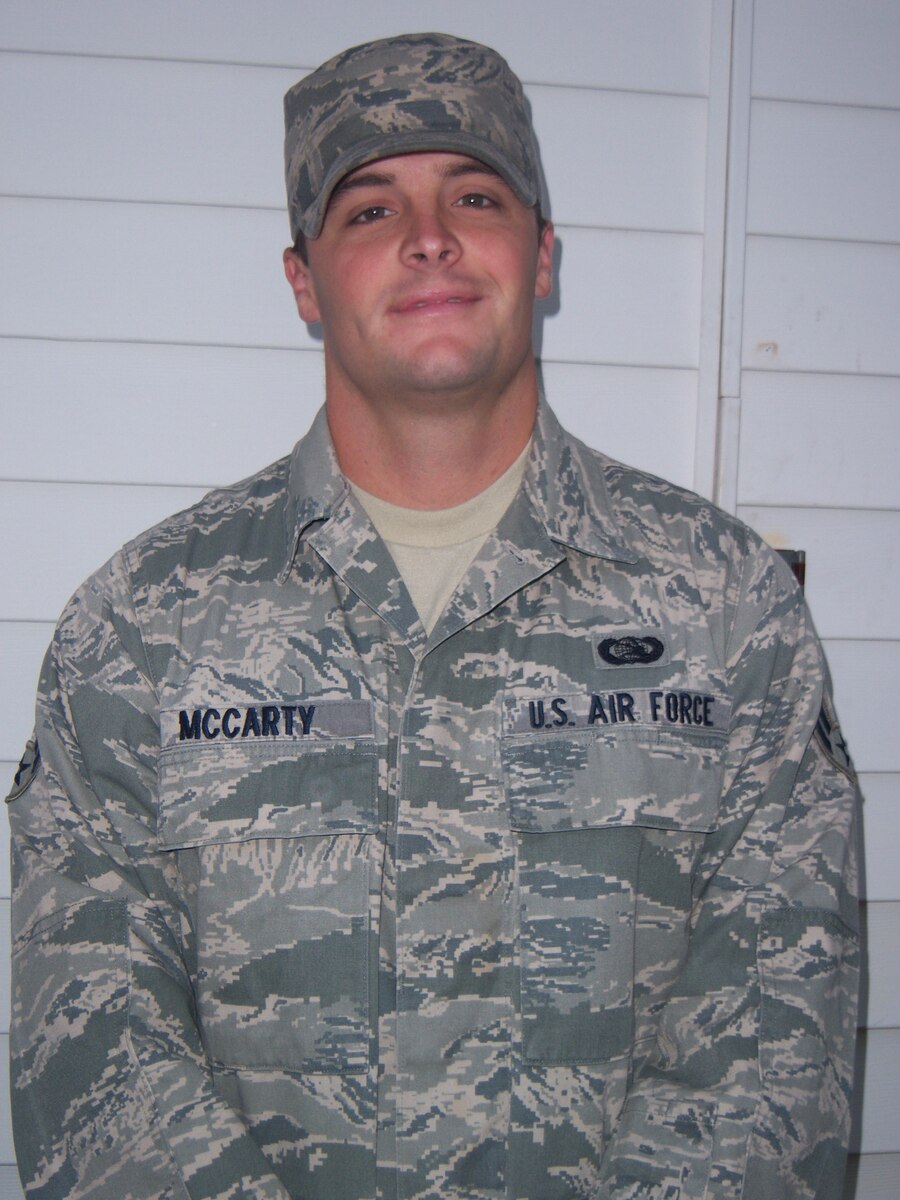Airman 1st Class Jeffrey McCarty, 1st Special Operations Communications Squadron cyper transport apprentice, poses for this photo while augmenting an exercise with the 353rd Special Operations Group Sept. 20, 2010. Airman McCarty was selected for this week's Tip of the Spear spotlight. (Courtesy photo)