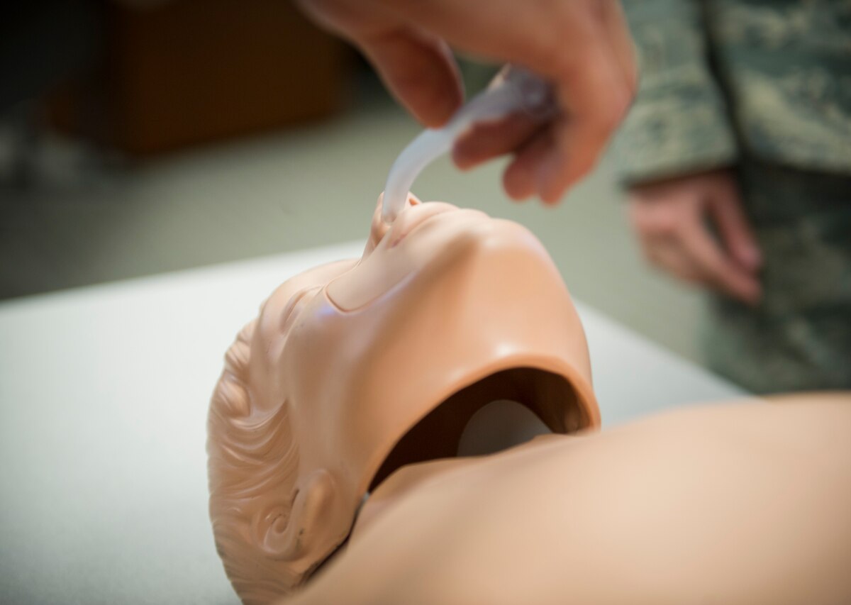 Senior Airman Donald Britt, 1st Special Operations Security Forces Squadron desk sergeant, looks at items in an Individual First-Aid Kit during a Self-Aid Buddy Care Hands-On course at the security forces squadron on Hurlburt Field, Fla., Jan. 22, 2015. Items in the IFAK can be used in life preserving situations, and include medical items such as emergency bandages, quick-clot, trauma shears and gauze. (U.S. Air Force photo/Senior Airman Krystal M. Garrett)